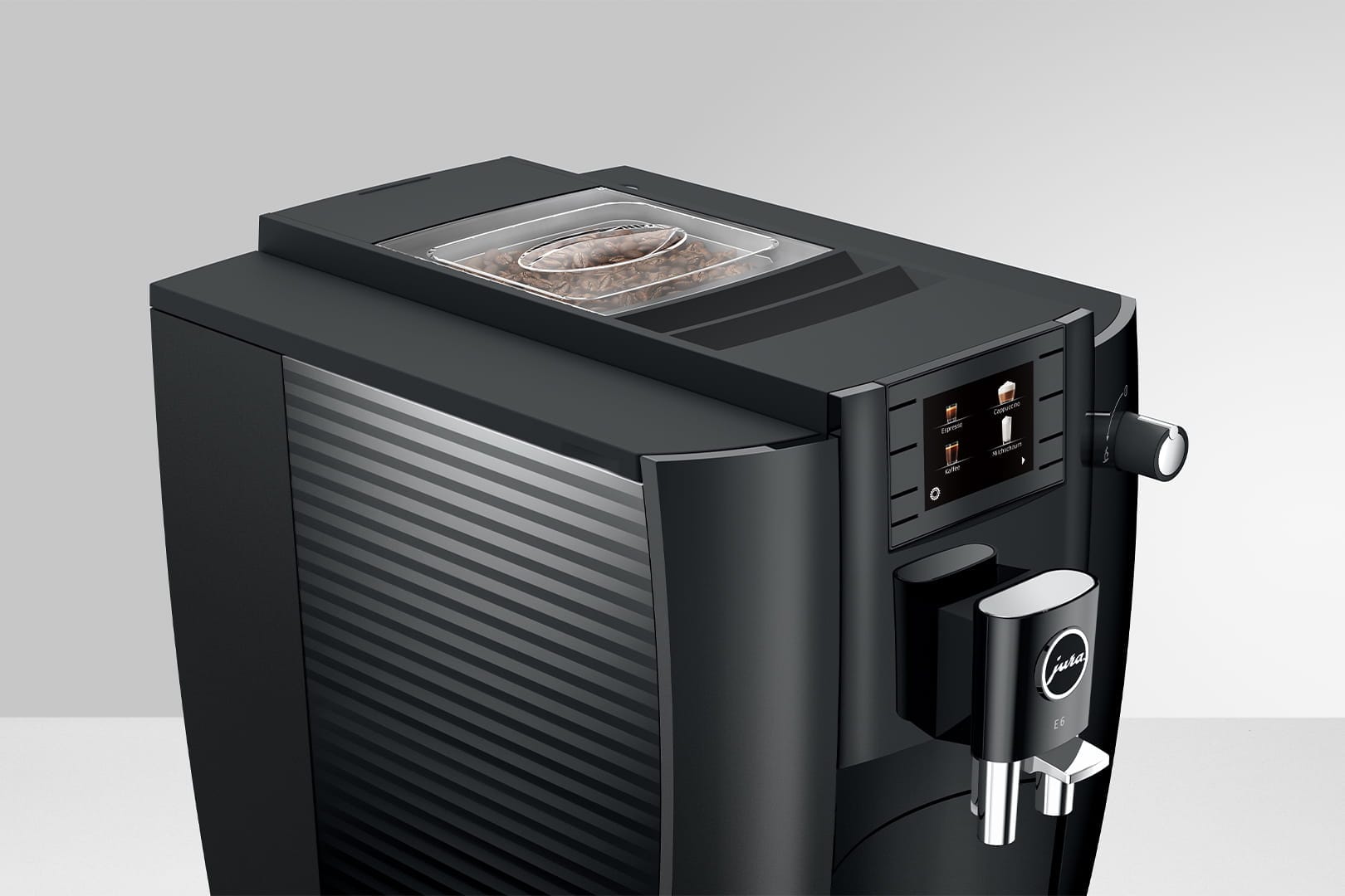 El visualizador a color de 2,8″ claro y sencillo, los seis botones perfectamente colocados y el concepto intuitivo le permiten manejar de forma cómoda la E6 tanto para preparar café como para ajustar sus preferencias personales o las funciones de limpieza. Por supuesto, la E6 también es compatible con J.O.E.®: prepare las especialidades de café que quiera desde su smartphone, configure sus favoritos y guárdelos o envíe los pedidos de sus invitados directamente a las máquinas automáticas para especialidades de café.